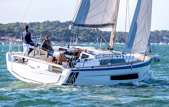 Designed by Felci Yacht Design, the Dufour 37 measures 10.77m overall but, once on board, you certainly feel like you are on a much bigger boat. Elected Boat of the Year 2023 by Sail Magazine in the US, its hull-design notably features a broad bow, a give-away indication that we are in the presence of a third millennium-designed boat. The flared shape naturally provides more room for the inside fittings; indeed, the fore cabin is strikingly spacious. The boats performance at sea is just as impressive, thanks to the combined effects of a generous sail area and an ultra-stable, chined hull. The cockpit is another standout feature as it is generously equipped with twin steering wheels and a long table that the crew will be keen to fold up and out as soon as the boat is safely moored. This is where the plancha grill comes into play, easily accessed once the transom has been flipped into its bathing platform position. The area below deck, immediately noticeable for the design of its hull windows, is both roomy and airy.